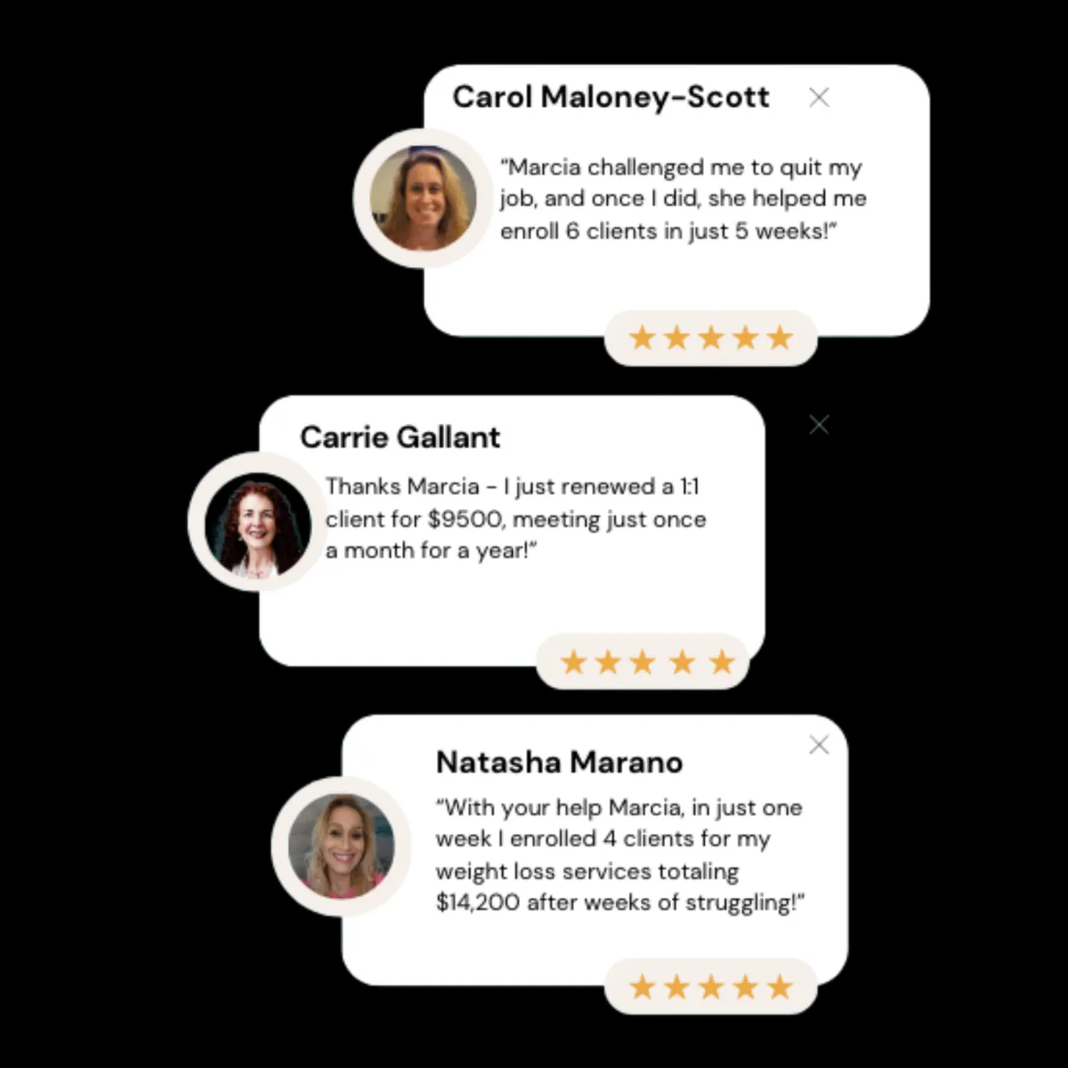 Then, in session 3, we will turn your goals and marketing strategy into sales and client enrollments.