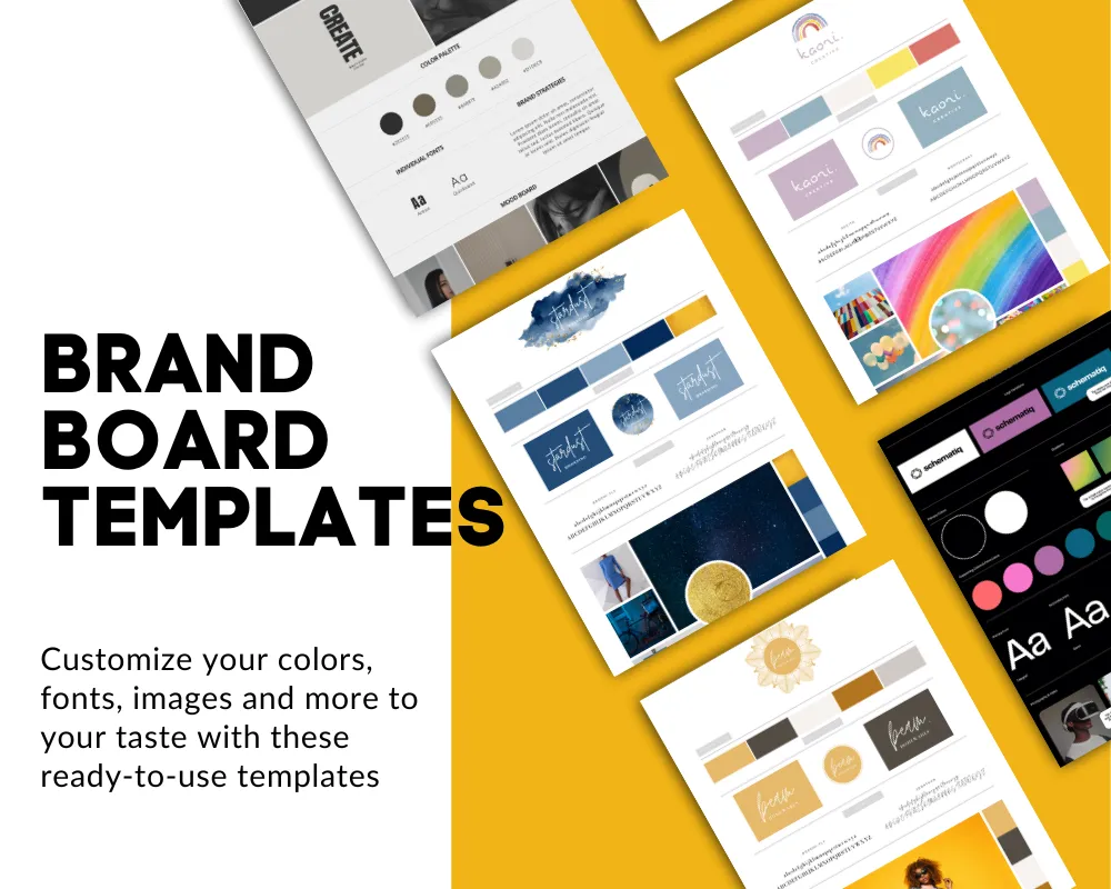 Use our Brand Board Templates - customizable in Canva and ready to send to your designer - to create your new colors, fonts, images and more to suit your taste and your offers in 2026!